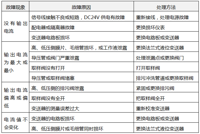 2、差压式液位樱桃视频入口在线观看常见故障及处理