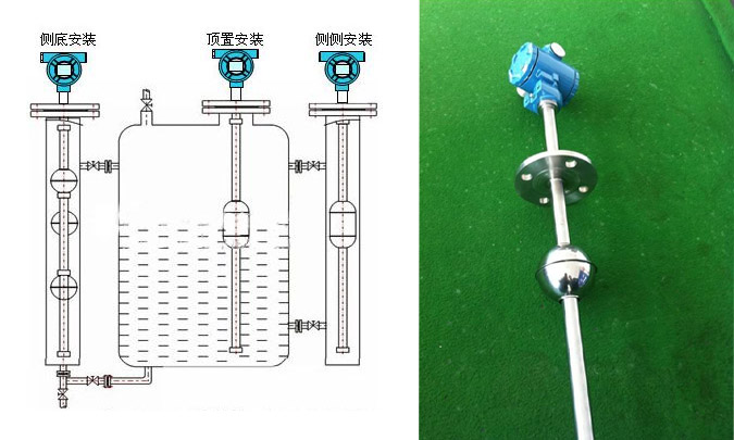 由液位传感器和智能HART板(电流转换器)两部分组成,浮球与液位同步变化,控制干簧管吸合断开,从而使传感器内电阻成线性变化,再由转换器将电阻的变化转换成4~20mA标准电流信号或叠加HART数字信号输出。